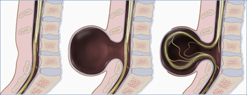 أقل الأنواع شيوعاً وفيه تنمو الفقرات بشكل طبيعي ولكن الغشاء السحائي ينبثق من بين الفقرات، وحيث أن الجهاز العصبي يكون سليماً، فالمصابين بهذا النوع لا يعانون من مشاكل صحية طويلة الأمد.